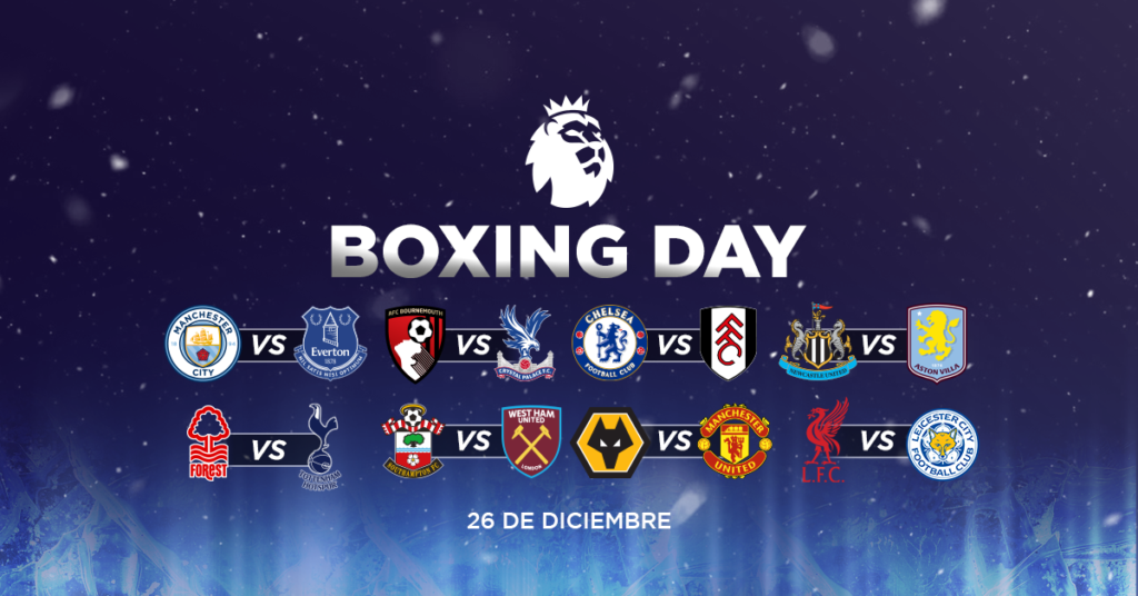 Amigos de «El Profe 007«, ¡la Premier League celebra la Navidad con una tradición única: el Boxing Day! Este 26 de diciembre, disfruten de una jornada llena de fútbol de alto nivel, con encuentros apasionantes y rivalidades históricas que se renuevan en un ambiente festivo. Los estadios ingleses se vestirán de gala para recibir a los aficionados que buscan emociones fuertes en el día después de Navidad. Prepárense para una jornada llena de goles, jugadas espectaculares y muchas sorpresas.