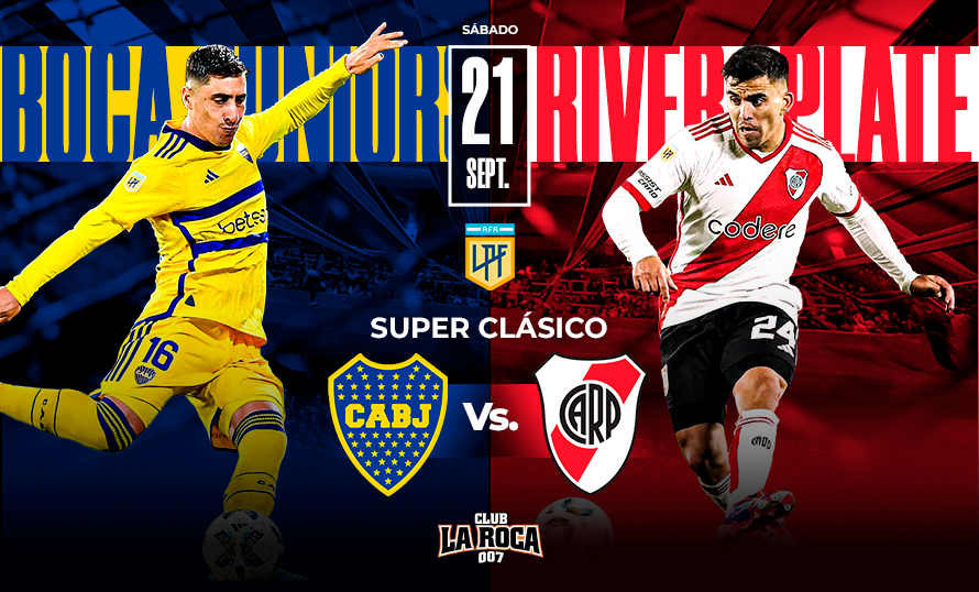 ¡No te pierdas el Superclásico Boca vs. River este sábado 21 de septiembre a las 4:00 PM (hora de Venezuela)! ¡La emoción está garantizada en el Club La Roca 007!