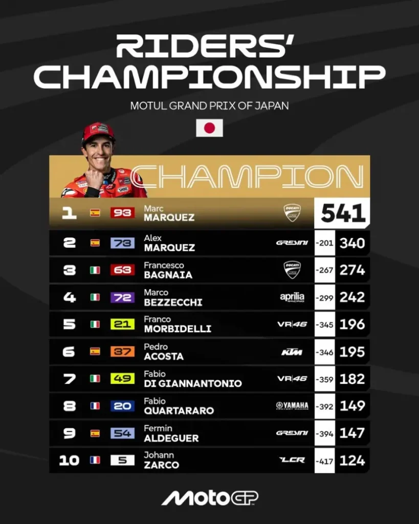 - Márquez, a Remontar: El ya campeón Marc Márquez buscará sumar sus primeros puntos en esta cita tras una carrera ‘sprint’ en la que fue sancionado, pero en la que mostró una mentalidad de ‘ir pasando el fin de semana’.