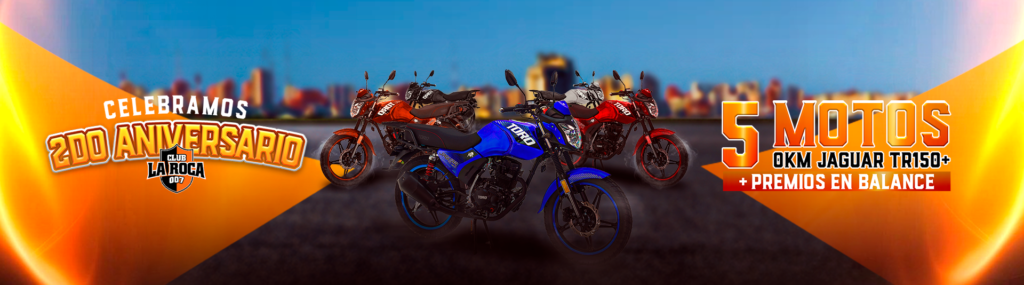 Este mes de agosto regalamos 5 motos 0KM Jaguar TR150 y premios en balance para jugar cada semana.