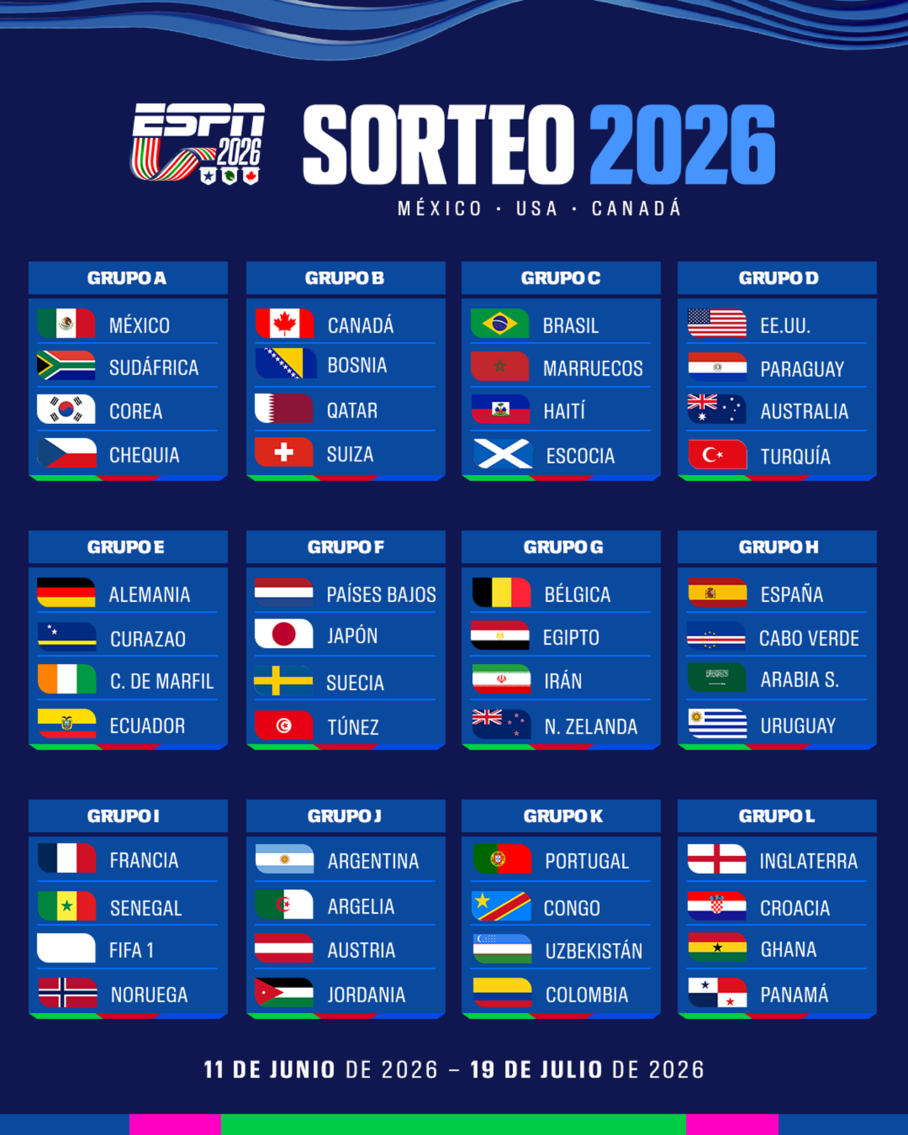 • Inauguración: 11 de junio de 2026 en el Estadio Azteca (México vs. Sudáfrica).