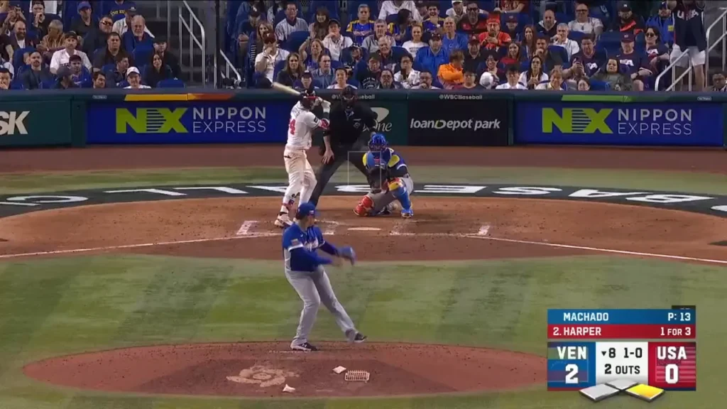 Pero el béisbol es caprichoso. En la baja del octavo, con dos outs y un corredor en base, apareció el fantasma de las ventajas perdidas. Bryce Harper, en una demostración de por qué es una superestrella, conectó un cambio de velocidad de Andrés Machado y lo depositó detrás de la barda del jardín central. El 2-2 en la pizarra cayó como un balde de agua fría sobre los 36,000 espectadores, la mayoría venezolanos, que pasaron del rugido al silencio absoluto en un segundo.