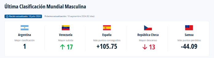 La FIFA publicará su próxima clasificación el 19 de septiembre, después de la ventana de partidos internacionales. Habrá que estar atentos a cómo evoluciona la posición de Venezuela y de las demás selecciones sudamericanas.